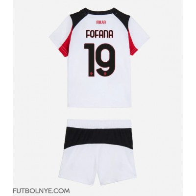 Camiseta AC Milan Youssouf Fofana #19 Visitante Equipación para niños 2025-26 manga corta (+ pantalones cortos)