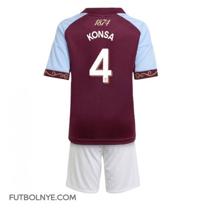 Camiseta Aston Villa Ezri Konsa #4 Primera Equipación para niños 2025-26 manga corta (+ pantalones cortos)