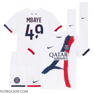 Camiseta Paris Saint-Germain Ibrahim Mbaye #49 Visitante Equipación para niños 2025-26 manga corta (+ pantalones cortos)